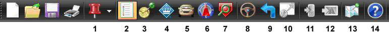 Near the top of the screen is a line I call the Tool Bar which has a bunch of icons. Here I show this bar with numbers below some of the icons and then a list naming the icons. Clicking these icons will cause different Panes to open and close. Each icon has a different function. Refer to this legend if you need to know which icon you might need to Click. There are several of these we never use.