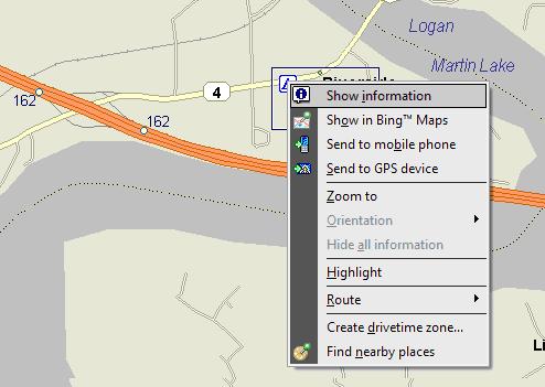 When I get close to a location I can again Right Click on that location and choose the Show Information option to learn more about that specific POI. Some POI lists do not give a lot of info and some give too much info.
