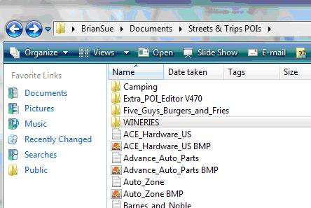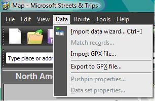 LATITUDE AND LONGITUDE NOTES: LAT runs East and West. Zero (0) is the Equator. The most southern Lat in the continental US is at about 24.5 degrees north. The most northern Lat in the continental US is about 49 degrees north. North is always plus (+) and is understood so does not need to be included as part of the number. LON runs North and South and this hemisphere is West which is minus (-) which must be shown as part of the number or the map will be in China. The most eastern point in the continental US is around -67 degrees. The most western point in the continental US is around -124.5 degrees. Short version – LAT = 24 to 49 LON = -67 to -125 MORE POIs FOR S&T 2010 Even with everything that comes with S&T 2010 and all the POIs in the MEGA FILE there are some POIs we might like to have that are not in our computer yet. What do we do about that? Here are a couple of sources of free POIs. Some of the more popular POIs on these websites may eventually find their way into the Mega File. These are all FREE! POI FRIEND http://poifriend.com POI FACTORY http://www.poi-factory.com For S&T you want to download a basic .csv (comma separated values) file or a .gpx file. The files on the websites above may have a number of format options to choose from. For .csv we probably want the basic Garmin file (not Garmin with other words attached to it). If the file is zipped we want to extract it. Create a folder into which you will save your POIs. When you are prompted DO NOT OPEN POI files. You want to SAVE POI files. Once you download a POI file and save it close out of the wizard and find the file in the folder you created to save it in. RIGHT CLICK on the POI file name and then Click to Extract the files. Save them again. I then delete the zipped file and save only the unzipped file. Now you have either a .csv or .gpx file saved in a folder. How do I add the file to MS S&T 2010 and the Mega File? Open the Mega File version of S&T and click DATA. Data will open the Pane showing the different options for importing POI files. For .csv files choose IMPORT DATA WIZARD and for .gpx file choose IMPORT GPX FILE as shown below. If there is an option for the POI (either/or) I prefer .csv files but others may prefer .gpx files. I find .csv easier to work with if I want to make changes or additions. With many POI files you can also download the icon/symbol for that POI which will usually be a .bmp file. Be sure to choose to download the symbol with the file if one is available.