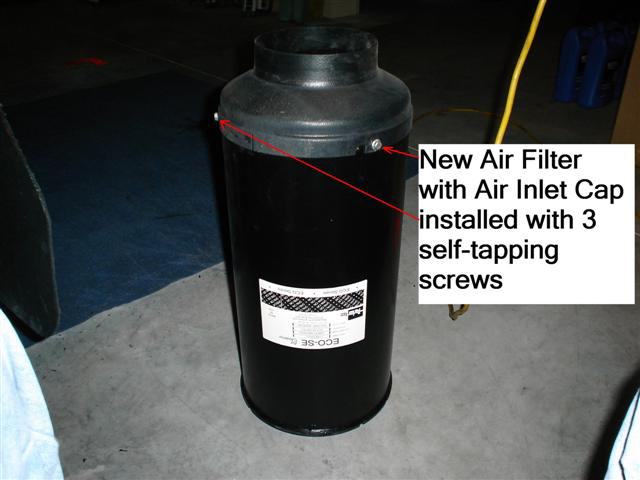 - Remove the three self tapping screws from the air filter inlet cap. Use a small hammer and screwdriver to push the