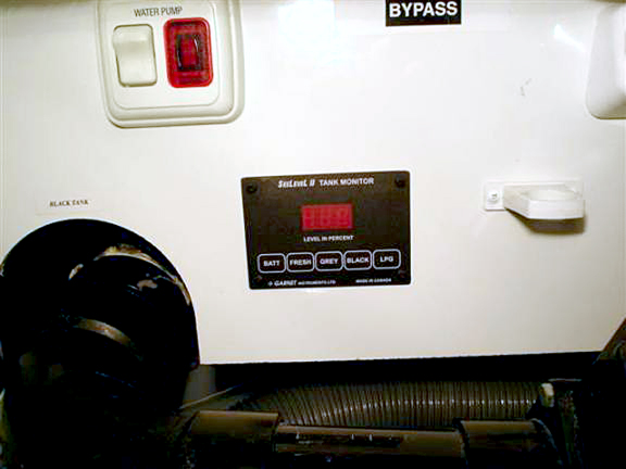 Installing SeeLevel 709 Sensors and Dual Monitoring StationsI just finished installing my new Dual See Level 709 tank monitors and sensors. The 709 tank monitors and sensors allow me to check the fluid levels on my fresh water, grey water and black water tanks. I can also check the LP level and the coach battery voltage level. I installed one monitor in the wet bay to aid in dumping and refilling the fresh water tank. Tiffin installed the deeper wedge side of the fresh water tank on the passenger side of the RV, by doing that the OEM tank monitor when displaying full is really only at about 65 percent of capacity. I installed the 710ES sensor on the passenger side of the tank, by doing so I can obtain a true indication of the level of fresh water in the tank. On my 2007 Phaeton I cut the tank sensor at 7.5 inches. 200 grit sand paper was used to smooth the tank surface. After that I cleaned the tank surface with acetone to remove any grease, dirt or oils. I used painters blue tape to temporarily stick the sensor on the tank. I then filled the fresh water tank until it overflowed. At that point I dumped a couple of gallons of water. I used this as my 100 percent tank fill level. I checked the sensor to make sure it was reading 100 percent. It was displaying 95 percent instead of 100 percent so I moved the sensor down slightly until it displayed 100 percent. Here is a picture of that fresh water sensor.